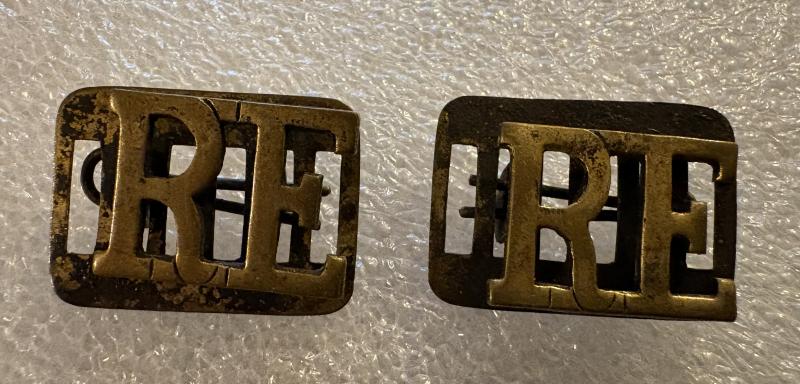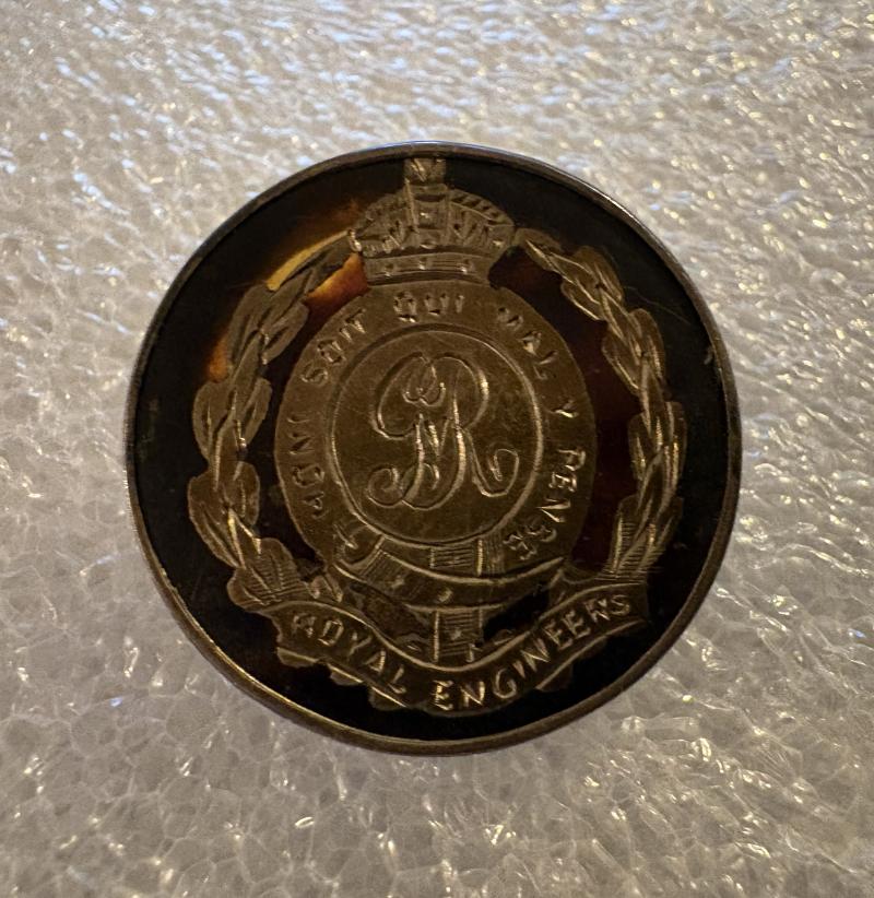 Nice HM Silver & Tortoise Shell Sweetheart Brooch With a pair of Coffin Lugged RE Shoulder titles (With backing plates and pins) Nice addition to any WW1 collection.